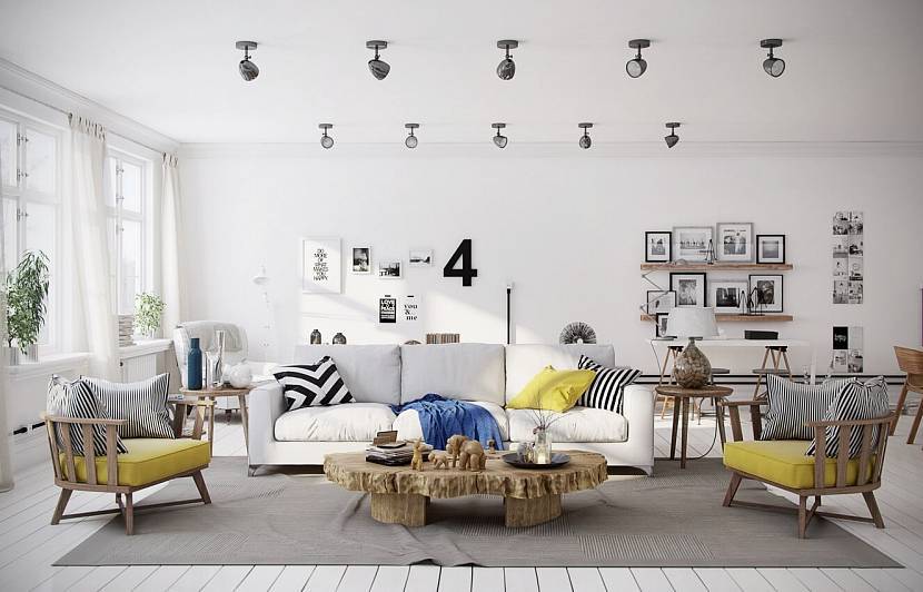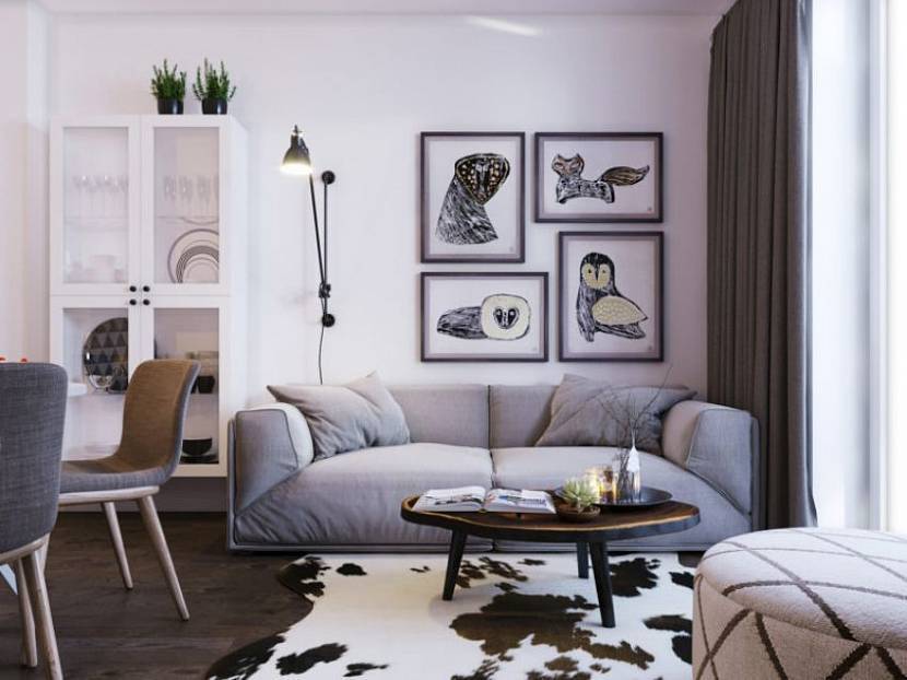Чтобы отразить скандинавский стиль в вашей гостиной простым способом, можно украсить интерьер фотографиями, картинами животных, макетами охотничьих трофеев. Подойдет все, что может быть связано с природой и животными Скандинавии.