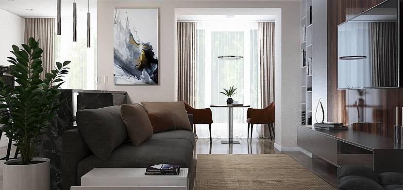 Интерьер современной гостиной маленького размера чаще объединяют несколько комнат в одну и разграничивают на зоны с помощью мебели, колонн или перегородок.
