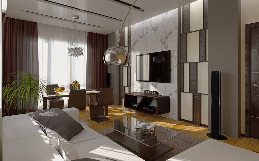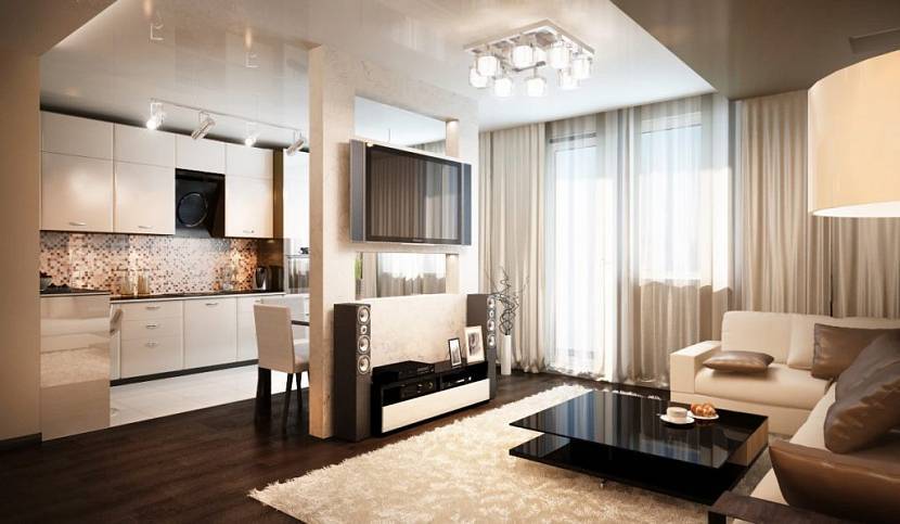 В однокомнатной квартире зачастую это не только гостиная, но и спальня родителей и ребенка, рабочий кабинет с компьютерным столом и столовая. При маленькой кухне сюда приходится выносить обеденный стол, многие семьи именно здесь и ужинают, собираясь у телевизора.