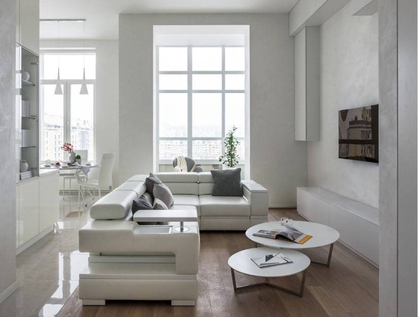 Настоящий фурор произвел стиль минимализм. Сейчас его выбирают многие не только для гостиной, но и для оформления кухни, столовой, прихожей и даже спальни. Все дело в простоте форм и линий, которые позволяют сохранять пространство максимально свободным и просторным. Минимальное количество мебели, декора и фурнитуры – едва ли не главные характеристики стиля. Интересно, что вместе с этим предполагаются технологичные и функциональные решения. Поэтому гостиная в стиле минимализм всегда смотрится интересно, современно.