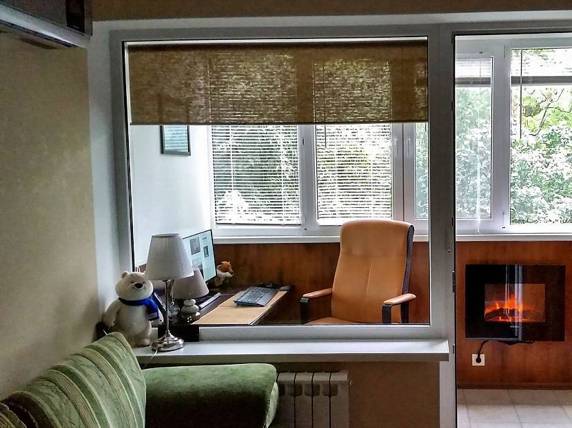 Еще один хороший вариант – размещение рабочего места на утепленной лоджии, объединенной с гостиной. Так решается много проблем: