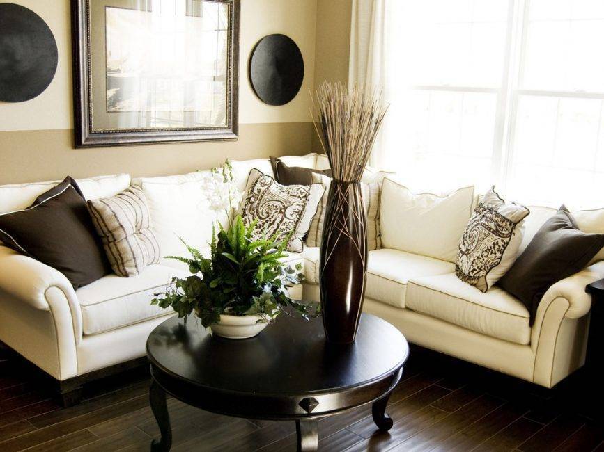 - Компактность. Специалисты рекомендуют использовать вместо одного большого громоздкого дивана несколько небольших кушеток. Такой шаг сделает комнату визуально несколько просторнее;