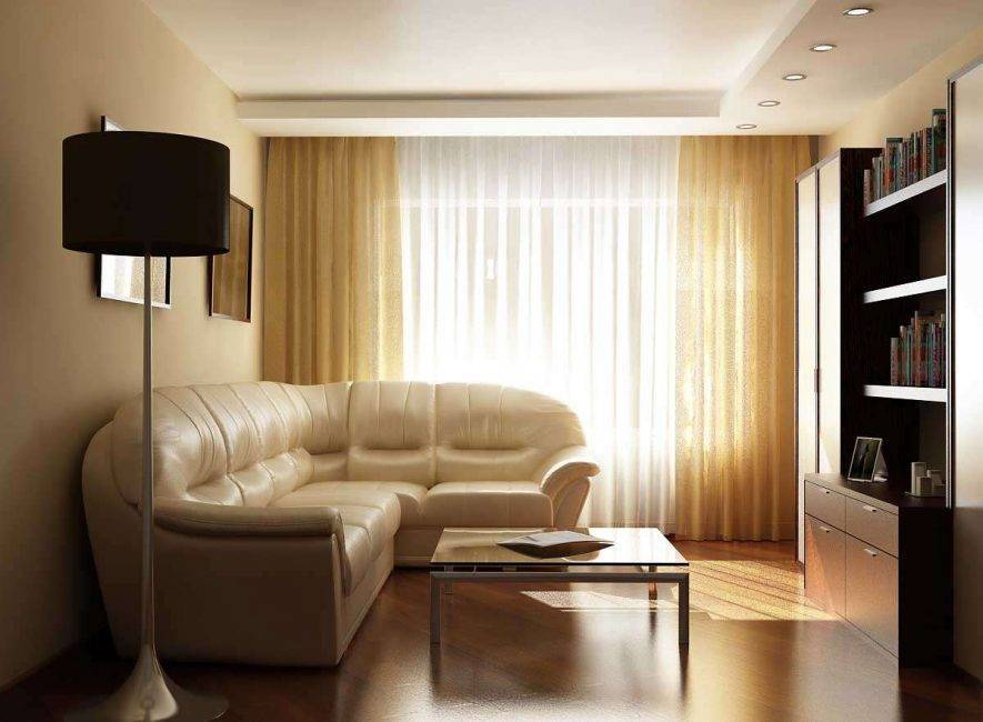 Здесь видно явное превышение длины по отношению к ширине комнаты. И многие хозяева совершают одну типичную ошибку – расставляют мебель в прямоугольной комнате вдоль длиной стены. Это приводит к тому, что комната визуально становится еще длиннее и уже.