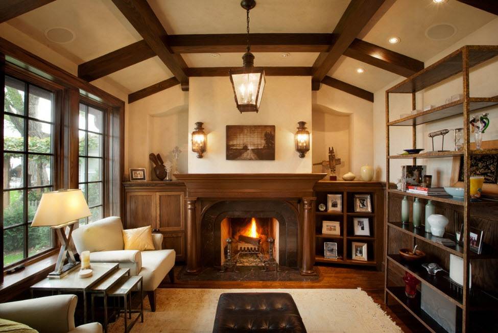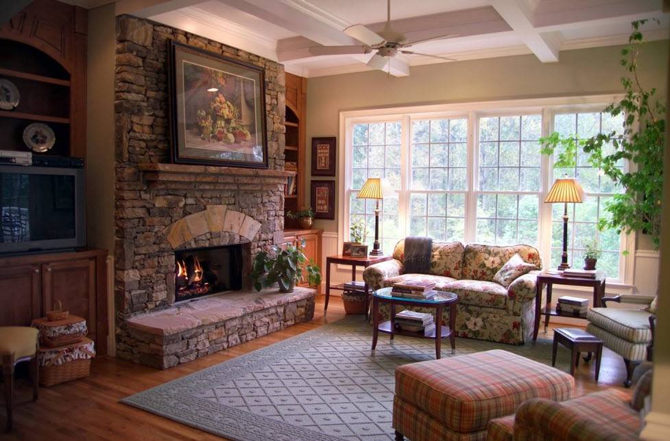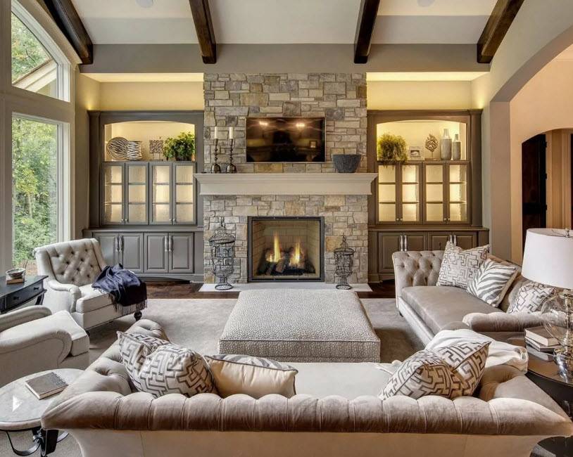 - Продумайте, какие элементы будут центральными в комнате – камин, красиво оформленные окна, мебель. К выбранному акценту подбирают другие детали интерьера.
