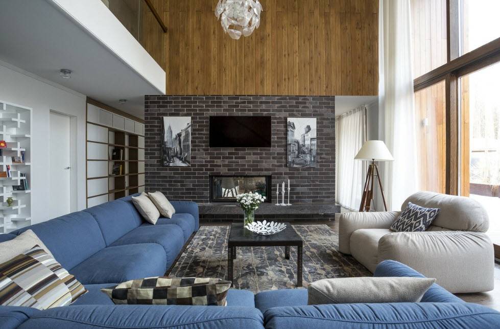 Внутреннюю отделку выполняют, исходя из общей концепции оформления дома и гостиной
