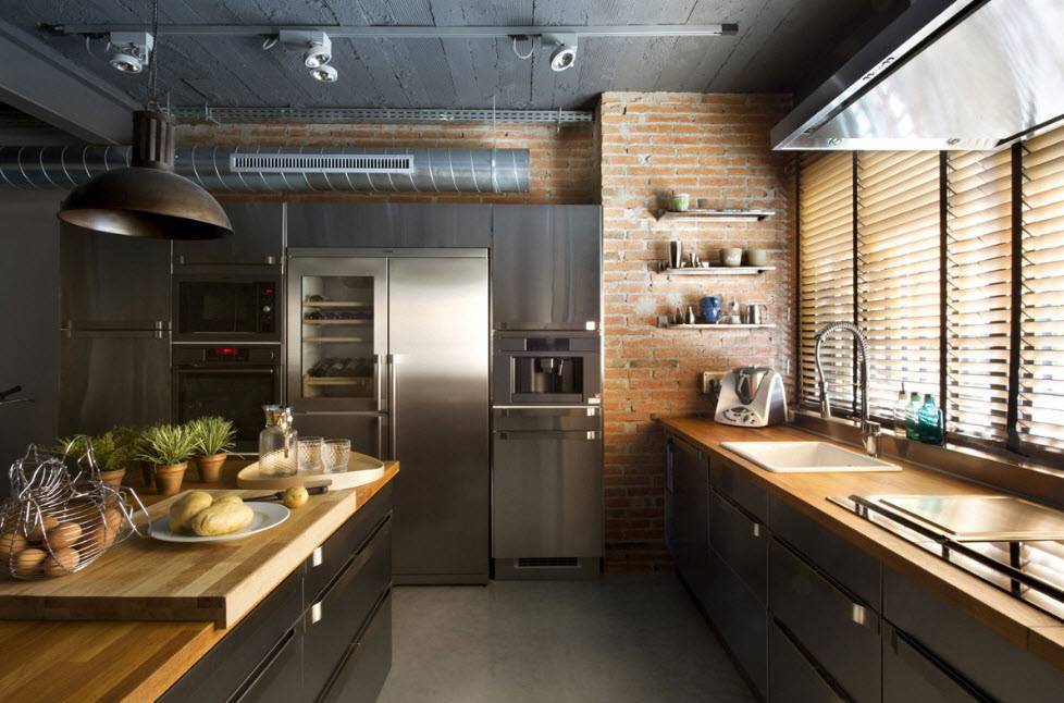 Комната, которая сочетает в себе гостиную и кухню или столовую – идеальное место для установки камина с живым пламенем. Многие дополнительно оборудуют место для барбекю, что очень удобно в холодное время года. Но если такая конструкция недопустима в вашем доме, то присмотритесь к камину с имитацией живого пламени. Они идеально смотрится в дизайне в стиле минимализм.