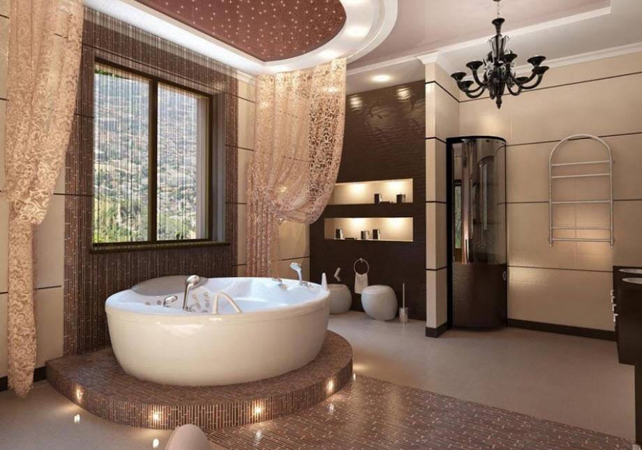 - Просторная и светлая. При строительстве зал располагается в угловом помещении, поэтому возникает возможность установки нескольких оконных проемов с разных сторон. Большое количество света благотворно воздействует на атмосферу.