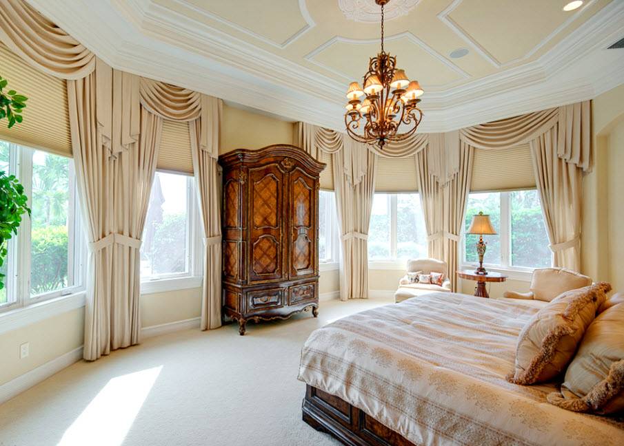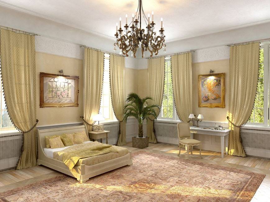 - Огромные залы бывают только в королевских замках. Решите, как зрительно увеличить пространство – не перегружайте окна объемными портьерами, используйте вертикальные линии в интерьере.