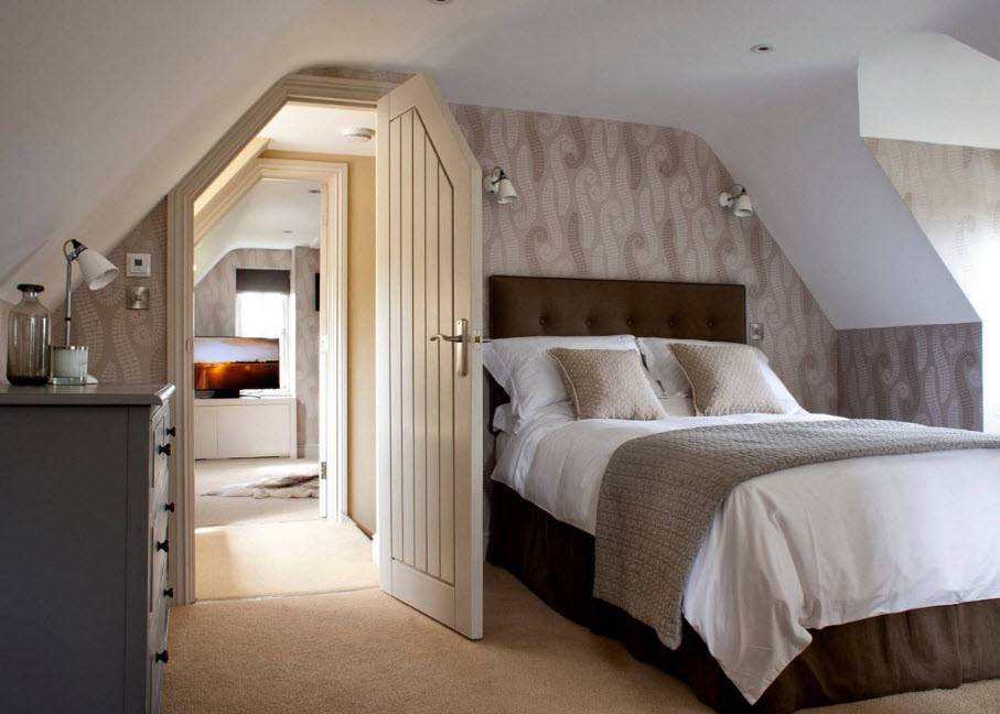 Стены и потолок в эклектичном стиле оформляют в спокойных тонах