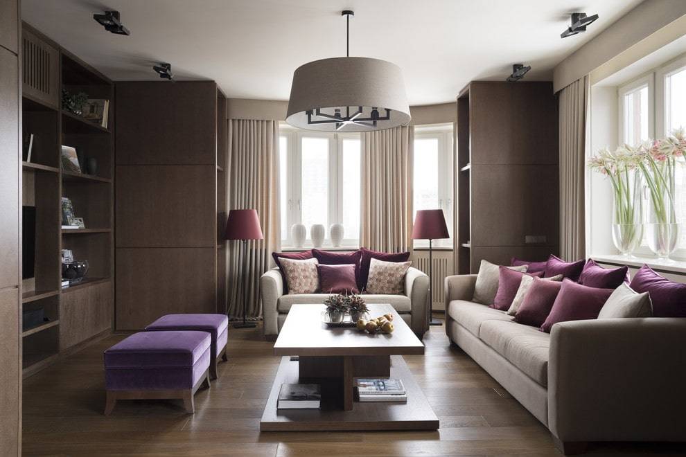 Бежевый и коричневый доминируют в классической гостиной. Эти теплые цвета не только вечны, но и неразрывно связаны со спокойствием и стабильностью. Действуя спокойно, они создают привычную атмосферу интерьера, не лишая его утонченности, присущей данному типу пространства. Их можно успешно разбавить бирюзой, зеленью и бордовым, а иногда золотом и серебром.