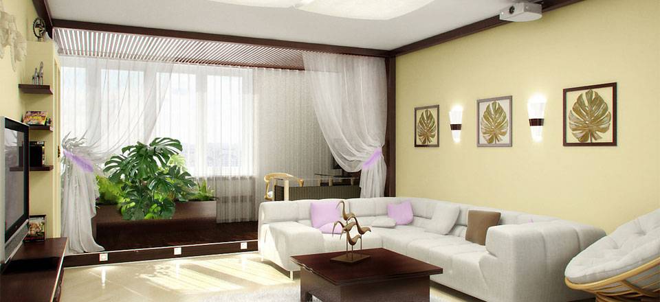 Полноценное оформление под слоновую кость с мягкой мебелью