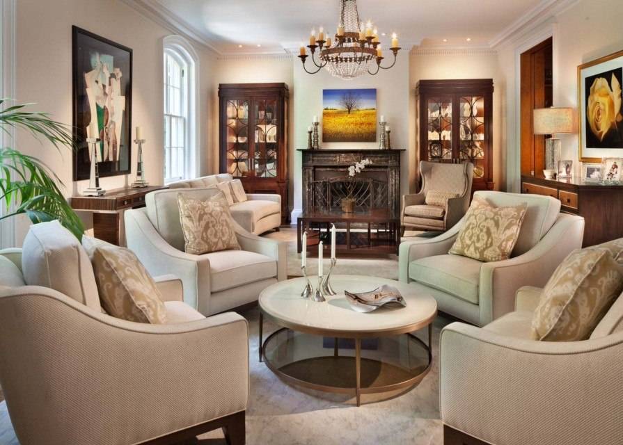 В классическом интерьере гостиной важна каждая деталь. Все декоративные предметы должны иметь смысловую значимость, просто так вещи в таком помещении не размещаются.