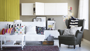 Учитывая потребности и нужды современных людей, производители ИКЕА стараются по максимуму адаптировать свою продукцию для большего удобства. Например, наличие встроенных емкостей и ниш для хранения вещей в интерьере гостиной – удобно и практично.