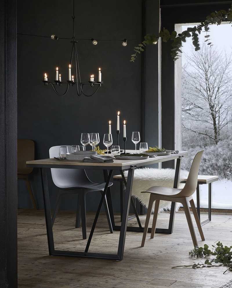 Для изготовления мебели используются достаточно разнообразные материалы. Например, идеальным сочетанием в интерьере кухни ИКЕА считается соседство стола из натурального дерева, стеллажа в виде модульной конструкции из оргстекла и хромированного металла, пластиковых стульев и мягкой мебели с велюровой обивкой.