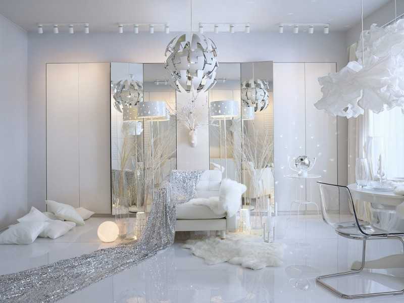 В визуальном расширении пространства помогут преимущественно светлая цветовая гамма, глянцевые поверхности, зеркала и минимализм в декоре.