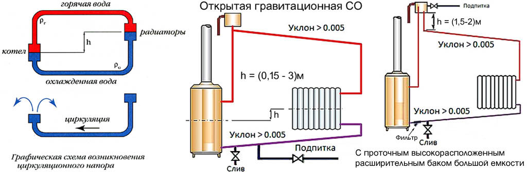 Виды систем отопления с гравитационной циркуляцией