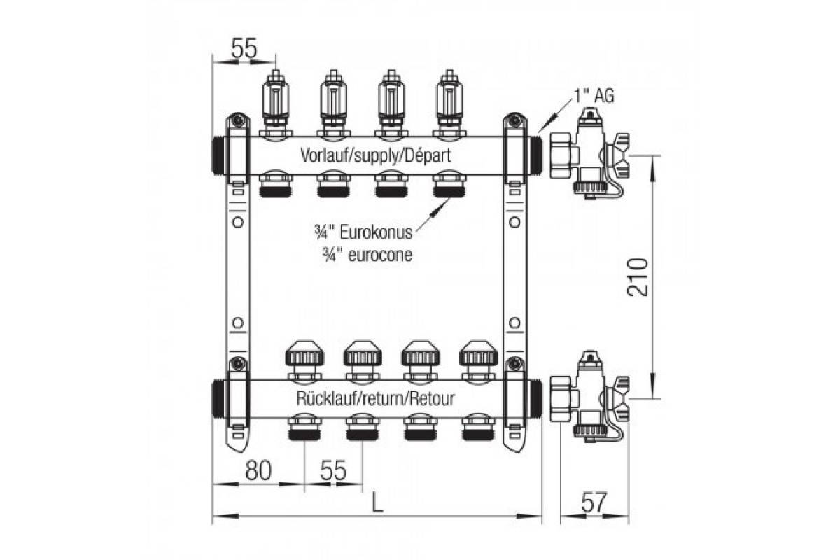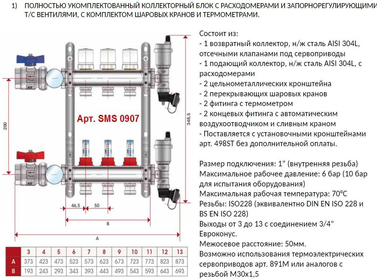 • Распределительная гребёнка обязательно комплектуется запорной арматурой (отсечного типа и регулирующего).