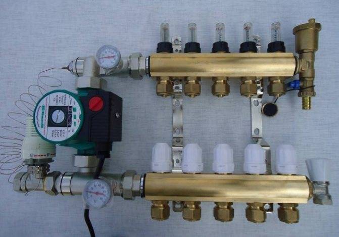 В состав коллектора входят клапаны для слива воды и выпуска воздуха. Здесь же удобнее всего расположить и измерительную аппаратуру в виде счетчиков контроля тепла. В этом случае все, что необходимо для эффективной работы этого узла, будет находиться в одном месте.