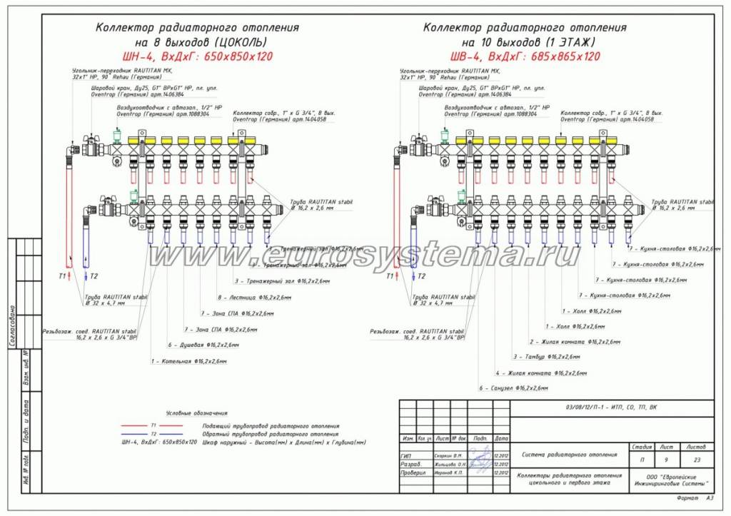 Весьма полезно пометить на изображении, какой контур или устройство присоединяется к каждому отводу — это поможет избежать путаницы при монтаже.