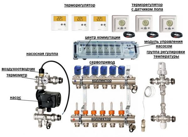 - степень автоматизации изделия – какие датчики представлены в гребенке, есть ли термостаты и прочая электроника для более тонкой настройки температуры в контурах теплого пола;