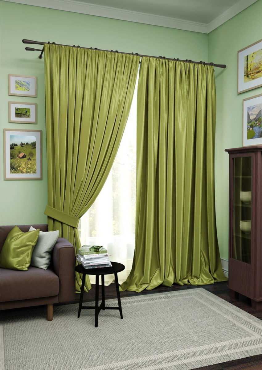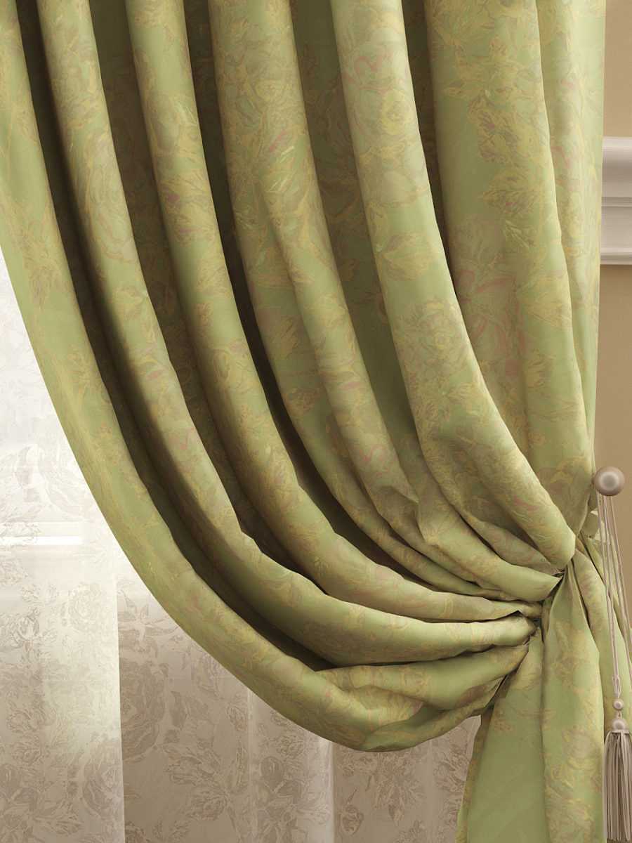- При применении портьер в обстановке должны присутствовать аксессуары, чей оттенок выигрышно оттеняет и поддерживает оливковый тон.