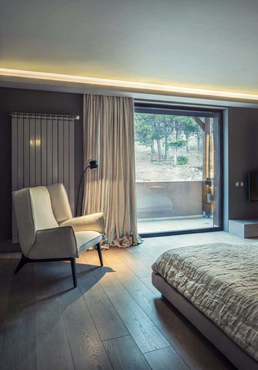 - Вешать занавески уместно, если помещение имеет большой метраж и качественное освещение. В идеале, потолки должны быть высокими, оконные проёмы – широкими, стеновая отделка выдержана в молочной гамме.