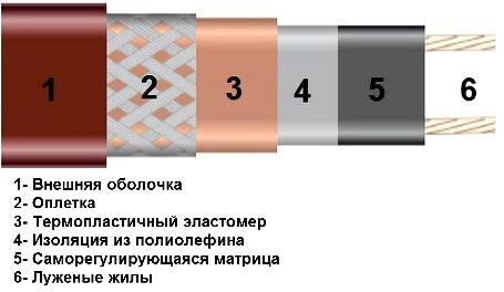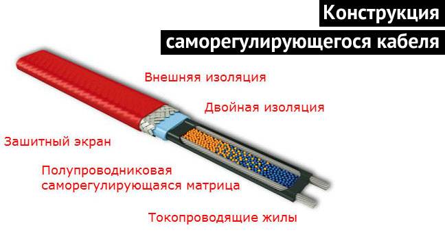 В конструкции саморегулирующего греющего кабеля есть принципиальные отличия: