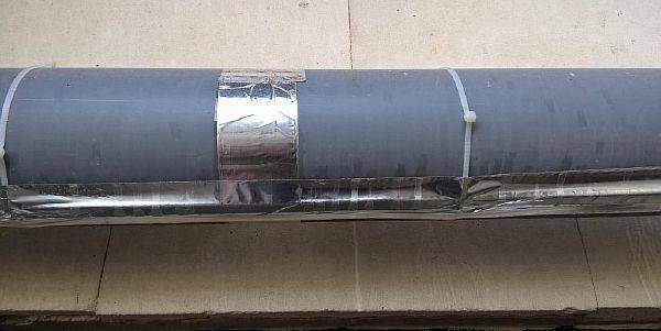 Кабель надежно закрепляют алюминиевым скотчем, монтажной лентой или стяжками. Если нужно, дополнительно прокладывают теплоизоляцию. Укладка проводится без сильного натяжения. Пластиковый скотч строго запрещен при подобных работах, поскольку неустойчив к высоким температурам.