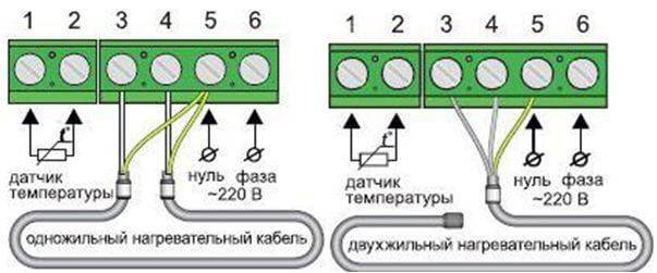 Чтобы не тратиться на постоянное подключение кабеля (что нецелесообразно), устанавливают термостат с датчиками. Как только температура опускается до + 2-3°С, он в автоматическом режиме запускает нагрев, при повышении температуры до + 6-7°С энергия отключается.