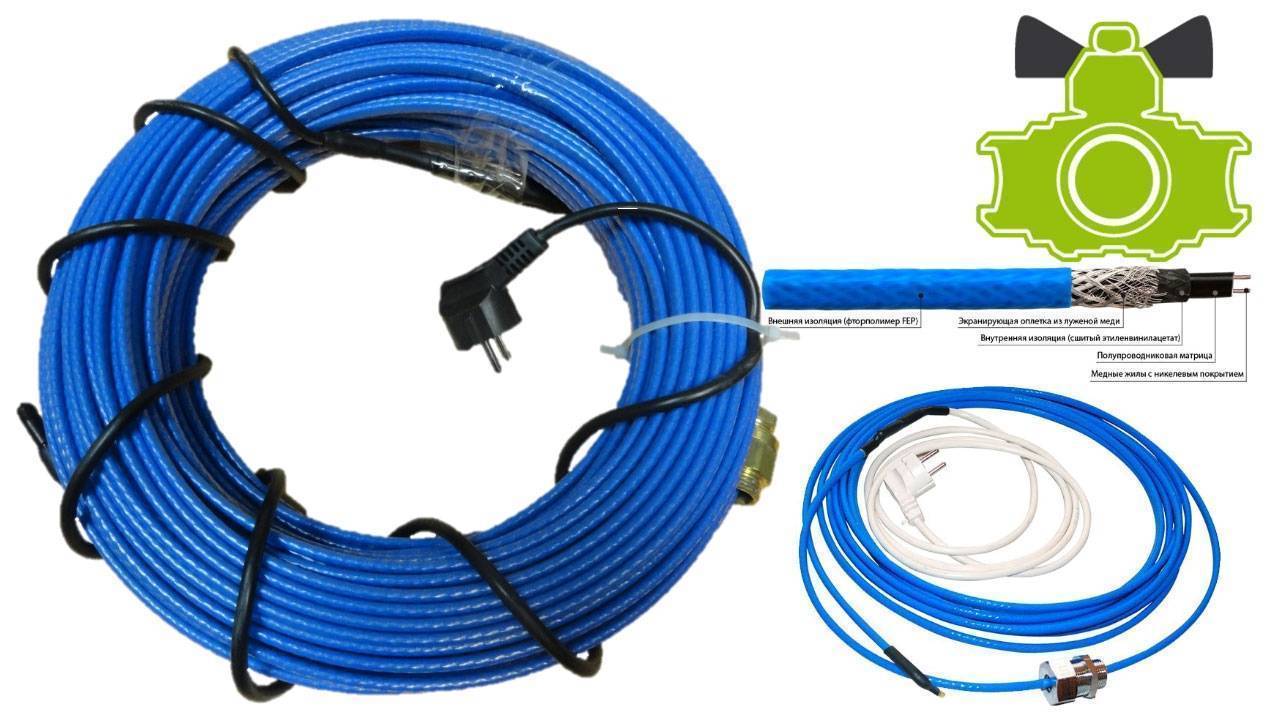 Двухжильные резистивные кабели используются для водопроводных систем так же активно, как и самреги. Их можно монтировать внутрь труб, используя тройники и уплотнители.