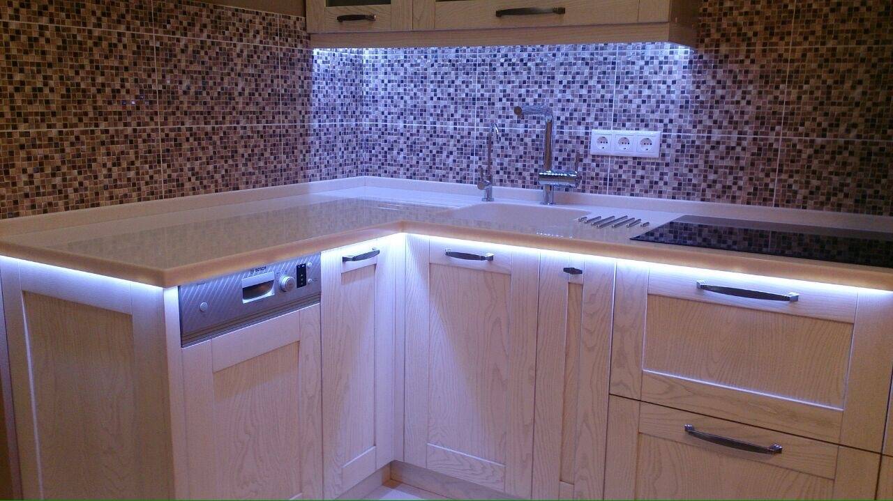 А если решили пустить светодиодную ленту под столешницей, то выбирайте
