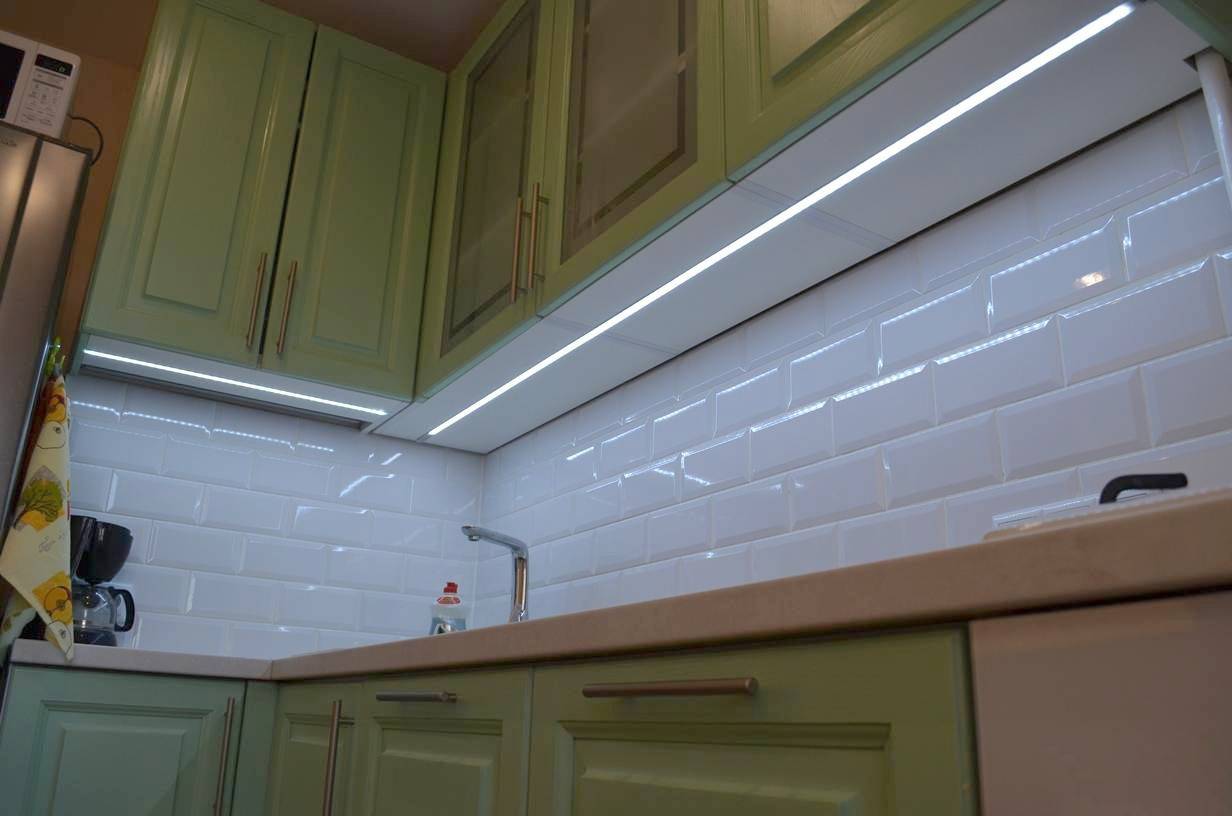 врезными в дно верхних шкафов кухни. Всё-таки свет от