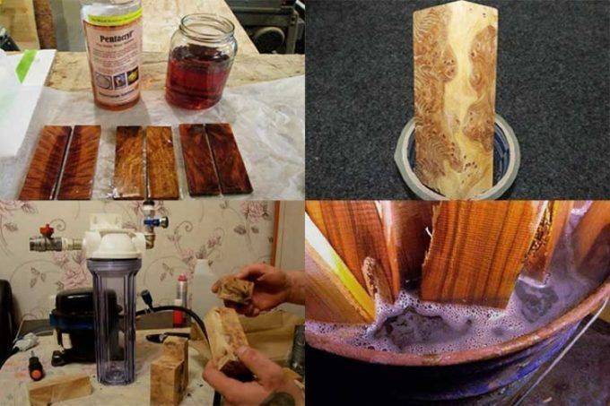 Не забывайте, необходимое количество Пентакрила зависит исключительно от размеров древесины. Такой метод подойдет как для небольших болванок, так и для крупных деталей.