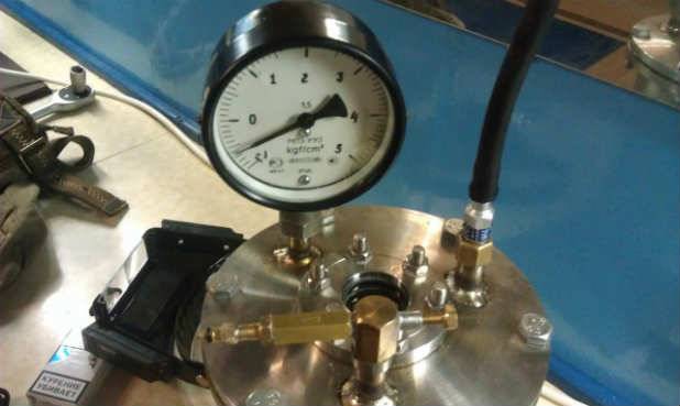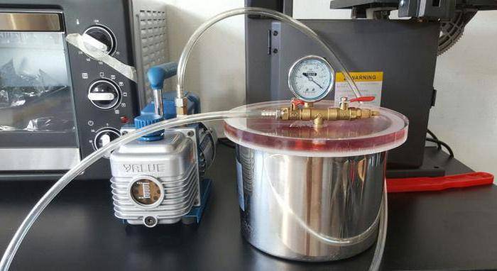 Вакуумная установка. Ее можно собрать из пластиковых или стеклянных емкостей. Для откачки воздуха нужны вакуумный насос, для поднятия давления – компрессор с манометром. Плюс – краны и соединительные трубки.