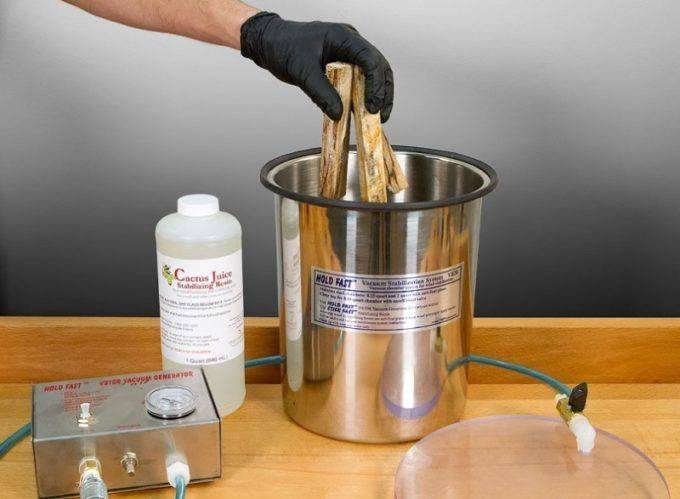 Много споров возникает вокруг вопроса, когда производить консервацию – до подготовки образца или после. Одни авторы отмечают, что последующая механическая обработка стабилизированной древесины – процесс довольно сложный, требующий не только опыта и времени, но и специального инструмента. Именно поэтому из заготовки сначала изготавливается нужный образец, а уже потом производится консервация материала.
