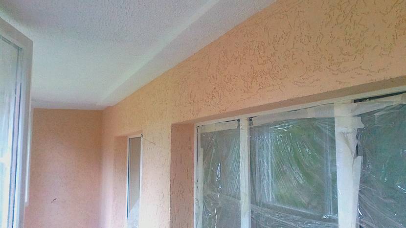Важно обрабатывать отдельные части стены, так как смесь быстро подсыхает, и наносить рельефный узор станет невозможно.