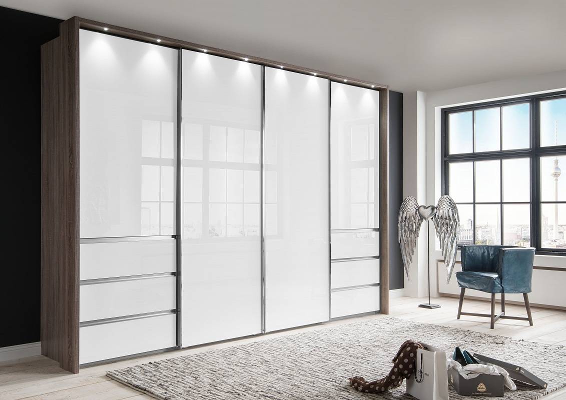 Однако у 4-х дверных шкафов-купе есть некоторые недостатки. К примеру, чтобы разместить мебель, потребуется много места, а если необходимо добраться до верхних полок, придется воспользоваться стулом.