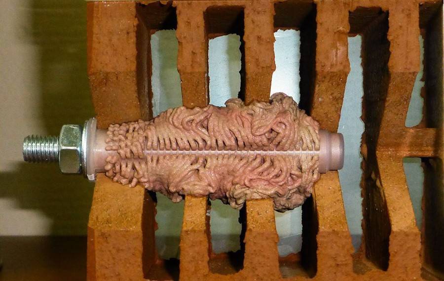 Вклеивающийся дюбель очень удобен, если необходимо зафиксировать металлический крепёж в рыхлом или ячеистом основании – например, в пустотелом кирпиче или пенобетоне. Химические анкера для пустотелого кирпича проникают в ячейки и поры, а после полимеризации прочно фиксируют болт в основании.