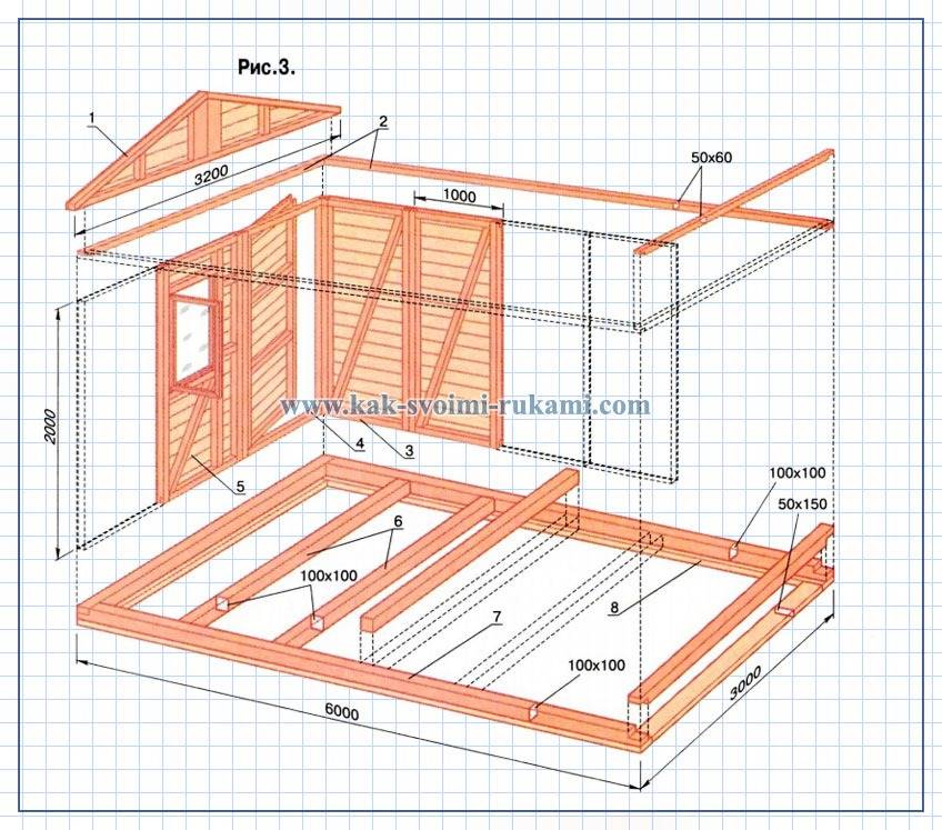Каркас сарая с односкатной крышейИсточник bankfs.ru