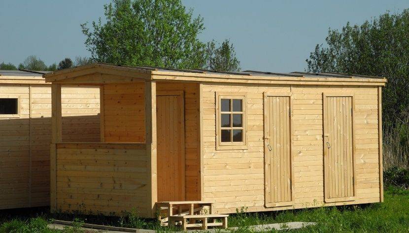 Наиболее распространенным материалом для возведения хозблока является дерево, однако нередко используется пластик или металл.Обратите внимание! Конструкция не нуждается в предварительном возведении фундамента.