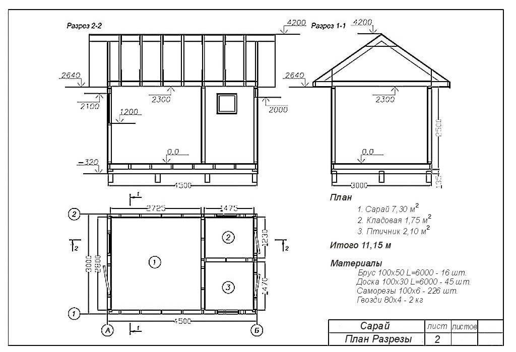 Лист план-разрезов из проекта сарая
