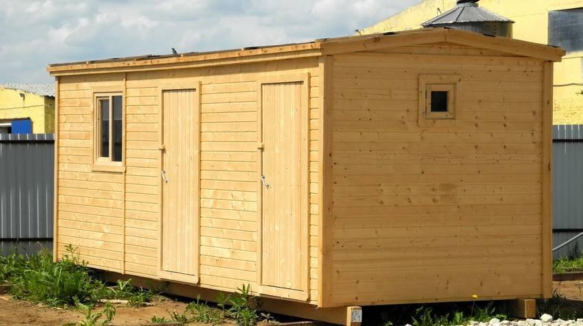 Временные хозблоки устанавливают на объектах строительства, чтобы обеспечить удобства рабочим.На заметку! В случае присутствия на участке централизованного водоснабжения для душа можно установить бойлер.