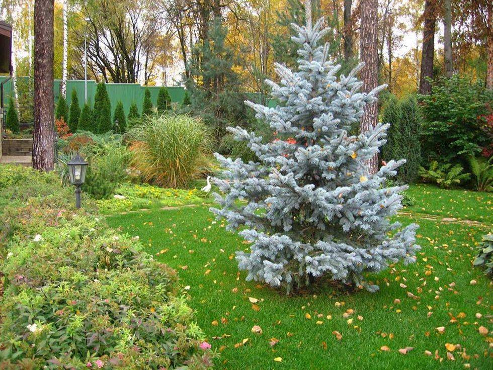Наряду с елью обыкновенной садоводы особенно любят разводить на своих участках ель колючую серебристую. Она имеет довольно большие иголки, окрашенные в приятный серебристо-голубоватый оттенок. Дерево прекрасно смотрится как в солитерных посадках, так и в композиции с другими хвойными.