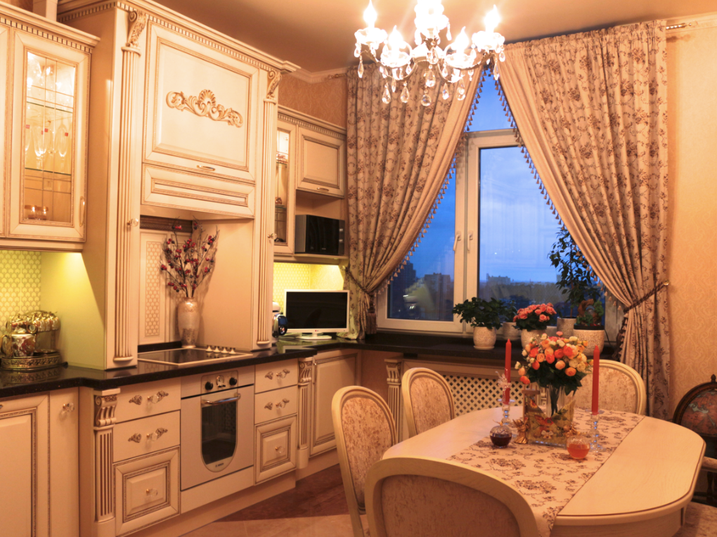 Каждый хозяин по-своему видит и чувствует красоту. Поэтому оформление кухни у всех получаются по-разному, даже если выбран один стиль. Эксперименты со шторами никогда не бывают лишними, они позволяют изменять образ не только окна, но и кухни в целом.