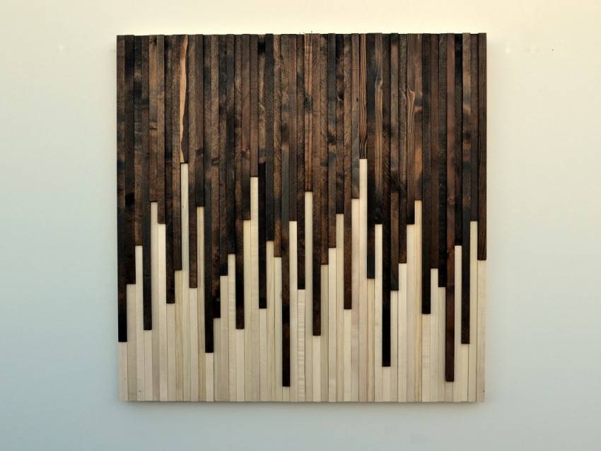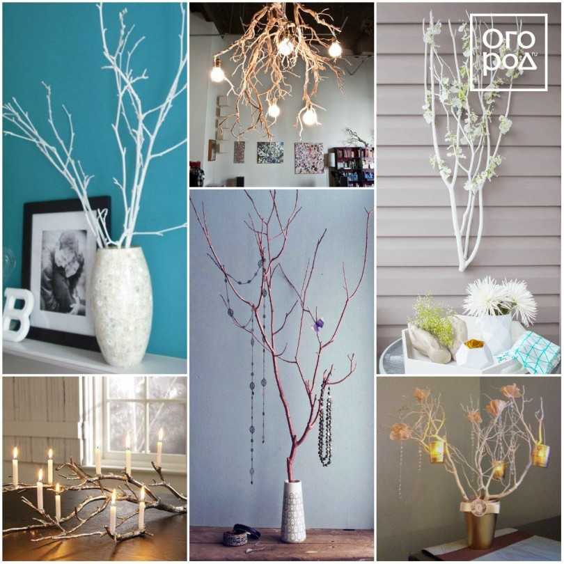 Великолепно смотрятся картины, составленные из небольших веточек, прикрепленных на деревянную основу. Покрытые лаком или акриловыми красками, они выгодно дополнят любой интерьер.