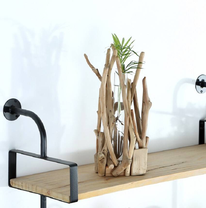 Отличной идеей для декора жилища являются различные варианты композиций с применением веток и небольших пеньков. Они могут быть оформлены в деревянную рамку или служить каркасом для настенных полок.