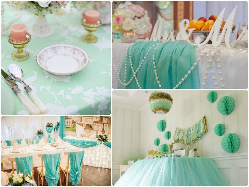 Так называемый цвет мяты подходит для тех, кто хочет добавить в свой праздник нотки молодости, легкости и свежести, от одного названия цвета уже веет той самой свежестью и вдохновением. Оптимальное время года для такой темы – весна или лето.