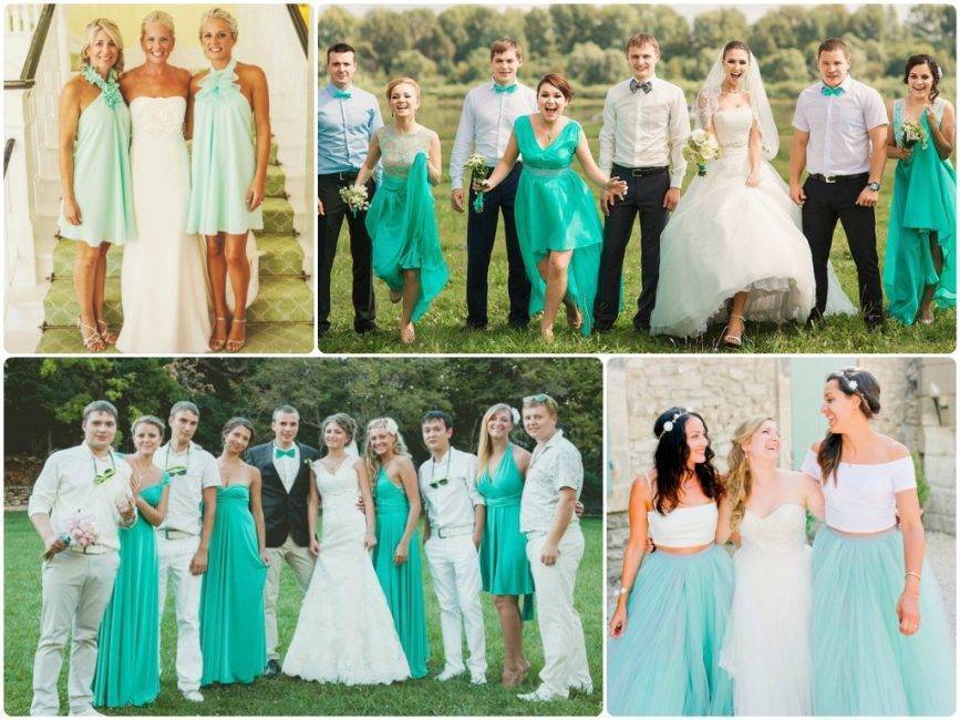 В образе молодых и свидетелей тоже можно использовать элементы мятного цвета