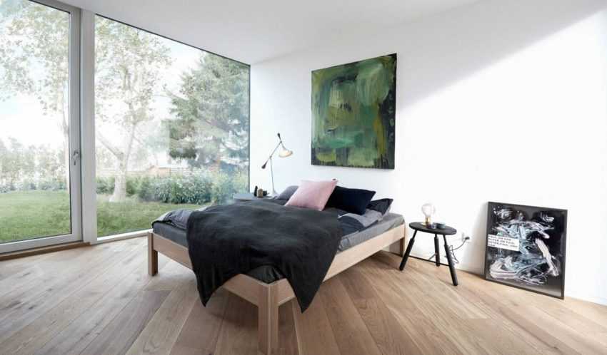 Дизайн спальни будет выглядеть легко и свежо, если для оформления использовать светлое напольное покрытие или светлые породы дерева.