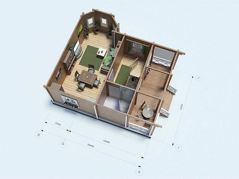 3D проект небольшого дома из брусаИсточник countrystroi.ru